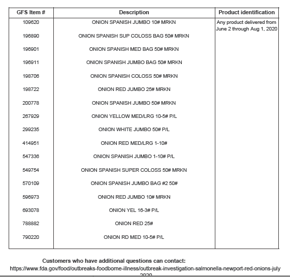 Thomson International (through Markon Foods) has issued a recall for onions because they might be contaminated with Salmonella. They were delivered between June 2 and Aug. 1