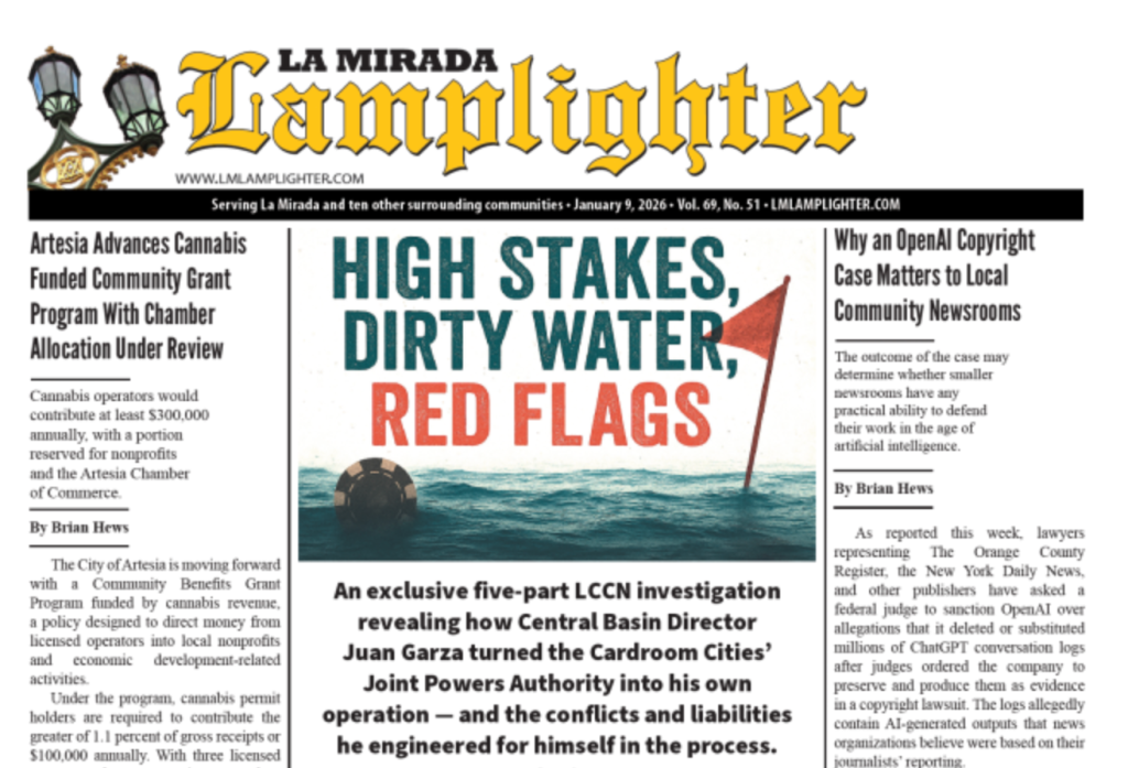 January 9. 2026 La Mirada Lamplighter Digital Edition Brian Hews 24 hours ago Share this: Click to share on Facebook (Opens in new window) Facebook Click to share on X (Opens in new window) X